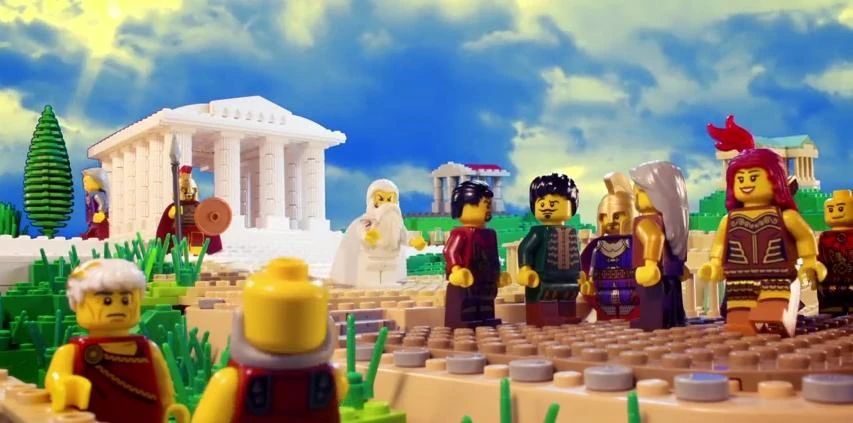 Constructed from Lego bricks, this is where Zeus rapped during his second verse, until his opponent Thor struck the ground beneath him with lightning and brought him down to the Underworld. Six other Olympians (Dionysus, Hades, Athena, Ares, Aphrodite, and Poseidon) make a group cameo appearance here.