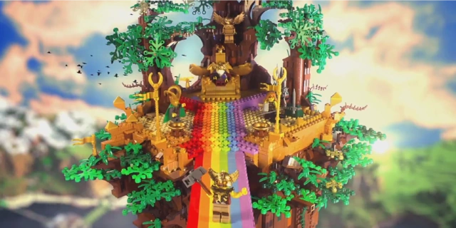 Constructed from Lego bricks, this is the initial location of Thor, before he was struck by Zeus' lightning and fell down to his ship. Loki was seen here dancing opposite Brokkr hammering and with Odin sitting motionless on his throne in the background. Natalie Portman (dressed as Padmé Amidala) was seen here only while being referred to by Thor.