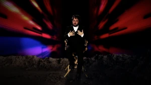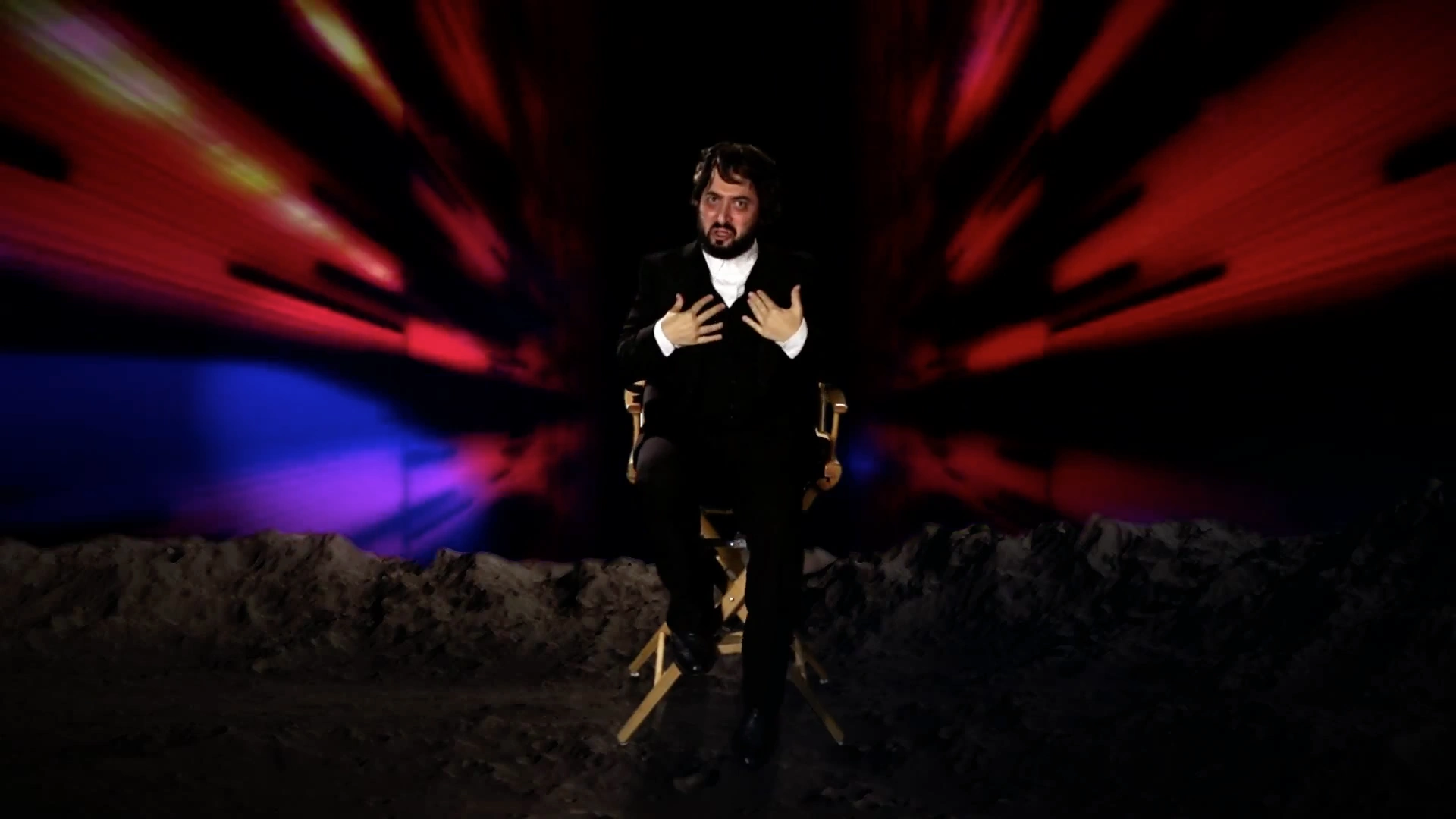 The Moon appears during Kubrick's verse. In the lead-up to his verse, he can be seen riding Danny Torrance's tricycle (from The Shining) onto the Moon. During the later half of Kubrick's verse, psychedelic colors appear behind the Moon, a reference to the Stargate sequence in another of his films, 2001: A Space Odyssey.