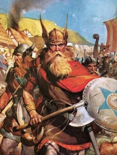 Vikings were Germanic Norse seafarers who raided and traded in Scandinavia and Northern Europe during the time of the Viking Age (793–1066 AD). During their journeys, they were the first to have settled in both Greenland and Iceland, and likely discovered portions of eastern Canada without permanently settling there. They established settlements throughout Europe, as well and played major roles in the history of Medieval Europe. For one, Viking raids in Anglo-Saxon England played a role in allowing the Anglo-Saxons to develop a collective identity, which in turn laid the groundwork for the eventual foundation of the Kingdom of England in 927 AD. The Viking Rollo also founded the Duchy of Normandy after he was granted that land by Charles the Simple of West Francia in exchange for baptism and promising to defend West Francia's lands from other Viking raiders (its people, who became known as the Normans would eventually conquer England under William the Conqueror in 1066 and even reconquer Sicily from the Muslims in 1061). In the East, Viking traders would turn the city of Kyiv into an important trading hub and in 862 the Viking Rurik would eventually found Kyivan Rus', which was the first state to politically unify much of the Eastern Slavic peoples (and thus the predecessor of the modern countries of Belarus, Ukraine, and Russia). Some notable Vikings include Erik the Red, Leif Erikson, Ragnar Lodbrok, Rurik, Rollo, and Harald Bluetooth.